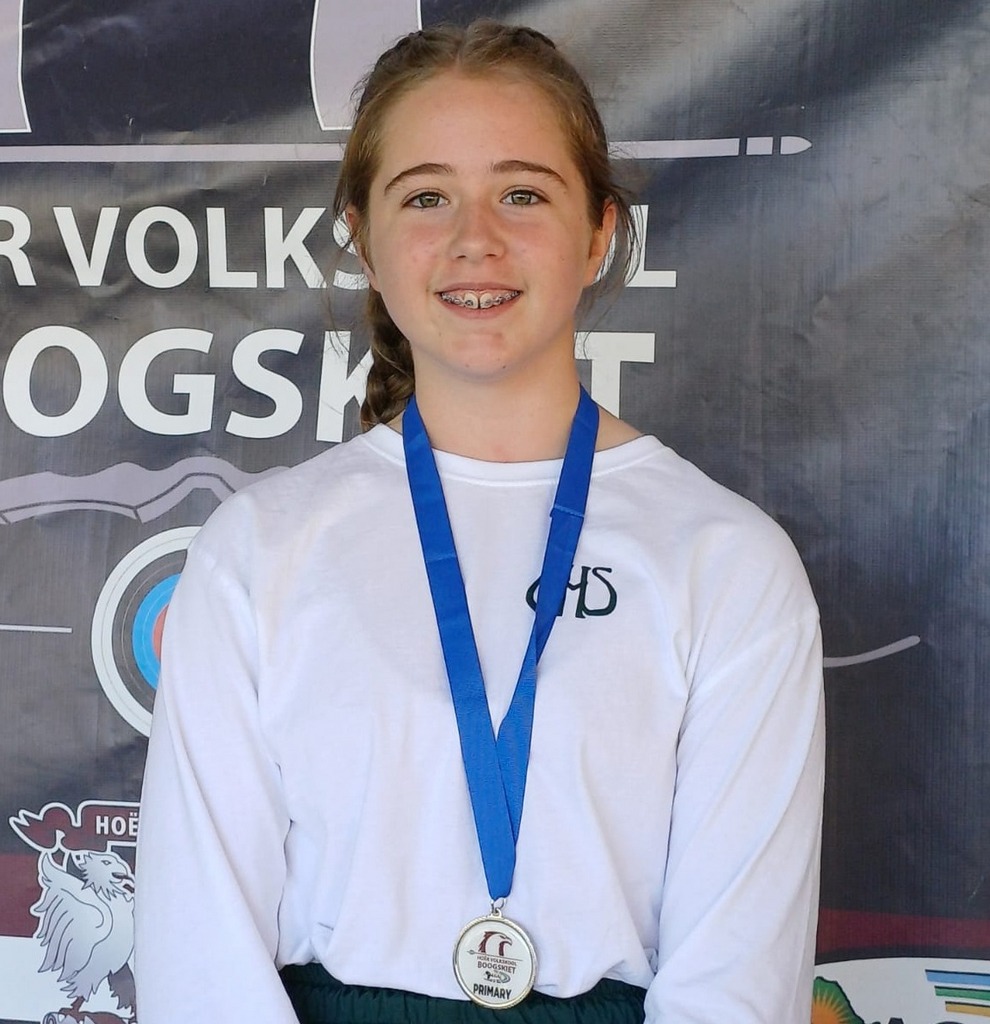 On Saturday, 18 April, Union High School Grade 7 learner ๐ฆ๐ต๐ฎ๐ป๐ฎ ๐ง๐ต๐ฒ๐ฟ๐ผ๐ป participated in an archery competition hosted at Hoรซr Volkskool.